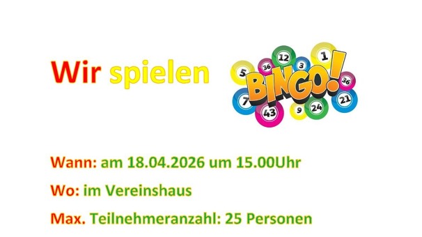 Maifest/Saisoneröfnung Sprechstunden werden wieder stattfinden, aber einiges wird geändert. Weitere Infos folgen Bingo am 18.04.2026 um 15 Uhr